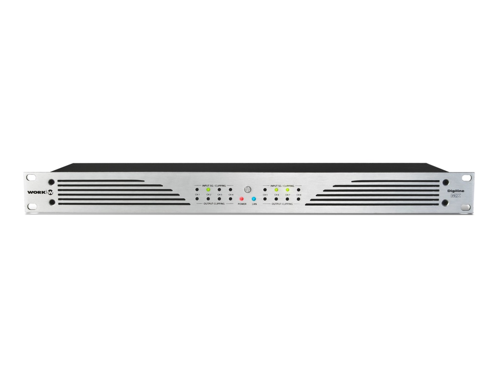 Work DIGILINE MX. Цифровой матричный микшер. Входы: 8 двойных микрофонных входа (с фантомным питанием) + LINE . Разъем Euroblock. Выходы: 8 выходов с разъемом Euroblock. Интерфейс управления: TCP / IP, RS232 и GPI. Программное обеспечение управления: WorkCAD Designer (входит в комплект ). Размеры (ШхВхГ): 483 х 44 х 229 мм.
